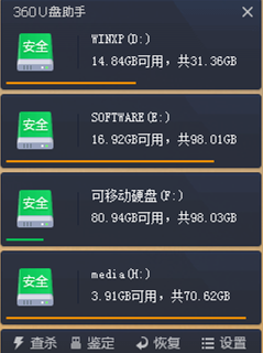 通过资源管理器打开各个盘符(点右键可以看到硬盘的类型、文件系统标识,已用空间、可用空间,及整个硬盘的容量等信息)。